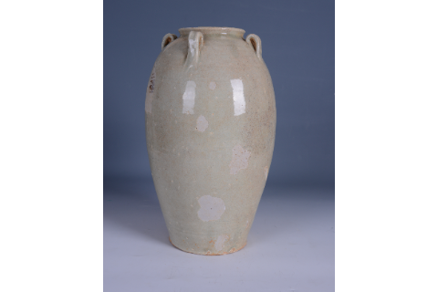 唐水車窑青釉四耳高身瓷罐